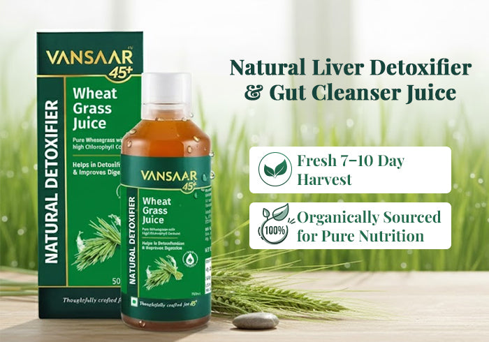 Vansaar 45+ Wheatgrass Juice for Natural Liver Detox and Gut Cleansing