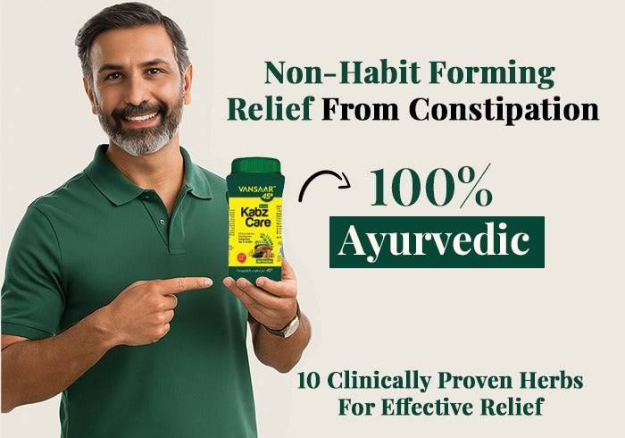 Vansaar 45+ KabzCare is specially designed for adults over 45 who often experience constipation, bloating, and indigestion due to slower metabolism and the natural aging process. This 100% Ayurvedic, non-habit-forming powder blends 10 clinically proven herbs like Ajwain, Choti Haritaki, Saunf, and Sonth to support smooth bowel movements and promote overall digestive balance.